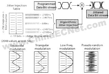 测试器件接收器的抖动偏差是一个非常重要的测试需求。D-3208选件与一些特定电路一起,能够利用直接时间合成技术来程序控制正弦波,三角波,伪随机波或其他任意抖动波形的总量,驱动到D-3208里基于管脚理论的驱动沿上,进行抖动偏差的测试。直接时间合成技术提供了一种比负载板上用一个简单被动滤波器方式更加有效的抖动偏差测试方法。