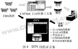 芯片设计者通过使用CATVert,可以将EDA设计数据经仿真后得到VCD、WGL格式数据,高速自动转换成ATE测试程序和测试用模型,从而大大地缩短了前期测试文件的准备时间(见图1)。