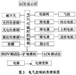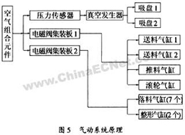 PLC通过控制电磁阀来控制各气缸动作,负压的产生等,完成电路系统与气路系统的联接。